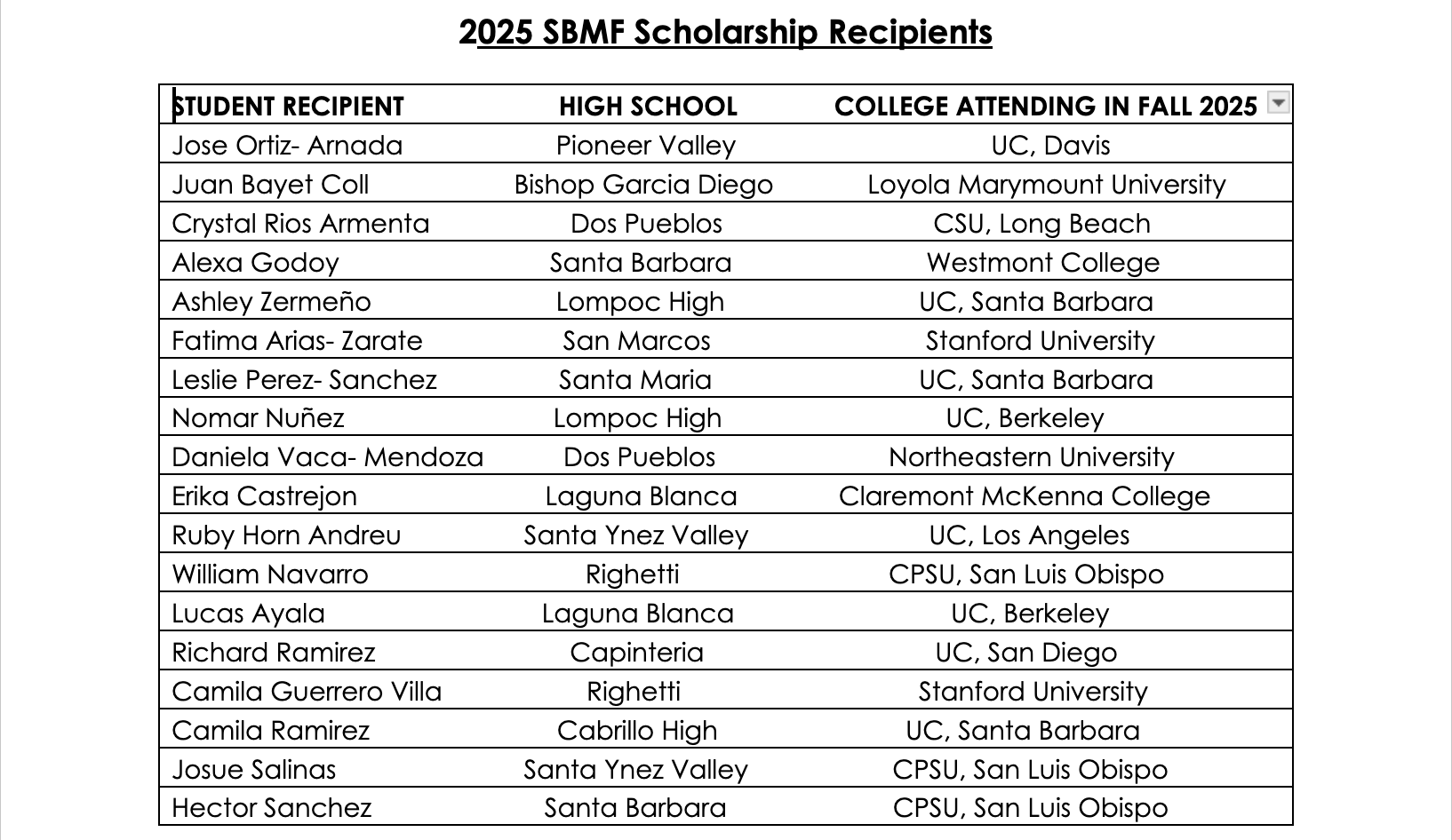 From its beginnings, the Santa Barbara Mariachi Festival has emphasized its revenues towards Latinx students in higher education. Regardless of the major, we strongly believe our community will benefit greatly from Latinx students being given access to a college degree. The Scholarship Foundation of Santa Barbara takes in applications and chooses the scholarship recipients based off our chosen criteria. Once chosen, awarded students and their families are invited to a scholarship reception ceremony, along with our sponsors, who make this event possible. Student scholarship recipients and two guests are also invited to our Mariachi Festival show in August.